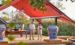The Royal Portfolio’s first tented camp is iconic, and not just because it’s under pink canvas. From the moment my guide, Nicola Bargiacchi, pulls up in front of Masiya’s Camp, I’m drawn into an enchanting world that both soothes and heightens the senses – a rare feat in the heart of a reserve that crackles with life. Giant ceramic pots stand sentry at the entrance, which is an outdoor living room – think Persian rugs, antiques, and elegant sofas to sink into – designed for the frequent arrivals and departures that punctuate a typical day on safari. Chilled, scented pink face cloths and delicious, freshly pressed green juice, jauntily garnished with starfruit, set the tone for what’s to follow. My soul is so ready to be quenched by nature; my heart instantly succumbs to the camp’s warm, welcoming embrace.