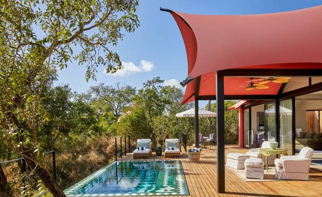 As with all her other properties across South Africa, Liz’s maximalist vision is realised through painstaking sourcing. She also has an uncompromising eye for doing things properly. Finding the exact shade of pink canvas for Masiya’s took months. If you’ve never stayed in a tent or dismissed the idea entirely, these six suites will convert you for life. At 100 square metres indoors and more than double that once you include the timber decks and heated plunge pools, this is emphatically not camping.
