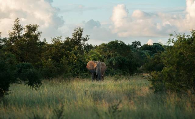 On our first morning drive, Bennett identifies fresh tracks in the soft sand near a copse of jackalberry trees, A leopard? Our attention is diverted by a frisky male rhino with his tail up, which Nicola explains is the sign of courtship behaviour. The female he is pursuing is not remotely interested, and we watch the standoff unfold at a respectful distance. Near Langwaan Dam, we pause to watch hippos surfacing and submerging, jostling for space, while nyala graze along the water’s edge. Bennett tells us about a 10-year-old leopard who hunts this territory with her two cubs, though she’s intensely secretive and only active at night. We manoeuvre slowly through a dry riverbed and come across an impressively large herd of buffalo around a bend – 150-plus individuals pulling at grass with their tongues or wallowing contentedly in the lushness. This becomes the rhythm of our days in the reserve – allowing nature to unfold at its own pace rather than chasing after sightings, trusting that patience and skilled tracking will reveal what needs to be seen.