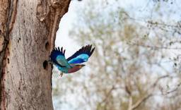 Royal Malewane falls within Thornybush, a private nature reserve that forms part of the Greater Kruger conservation area. The biodiversity across its 15,000 hectares is amazing. The wannabe birder in me enthusiastically ticks off species on every drive: blue waxbills, bronze-winged mannequins, dark-capped bulbuls, yellow-fronted canaries, magpie shrikes, a southern black flycatcher, little bee-eaters, and a lilac-breasted roller sitting perfectly still on a fever tree branch. I appreciate Nicola’s inclusion of the Afrikaans name for many of the birds we spot, which are almost always more descriptive (and memorable) than their English equivalent. Between Nicola and Bennett, nothing escapes their notice. They take turns pointing out the small things, too, such as spider wasps paralysing their prey to provide their larvae’s first meal, the changes that undergo tamboti trees, as late summer becomes autumn, and lichen patterns that indicate rainfall levels.
